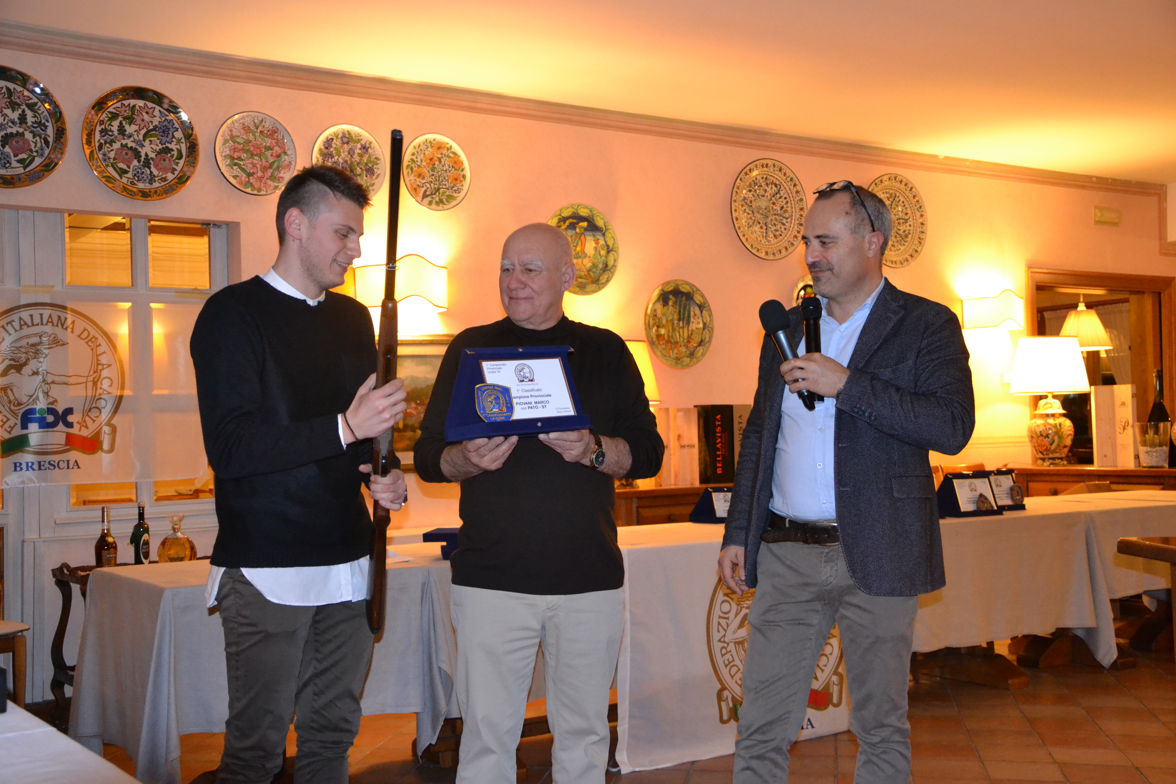 Ecco anche qualche immagine tratta dalla serata di sabato. Nelle fotografie le premiazioni della categoria Lady e della categoria Under 30, per la quale il primo classificato, Piovani Marco, è stato premiato oltre che con la targa anche con il fucile Modello FIRST Calibro 12 messo a disposizione dalla ditta Marocchi di Sarezzo.